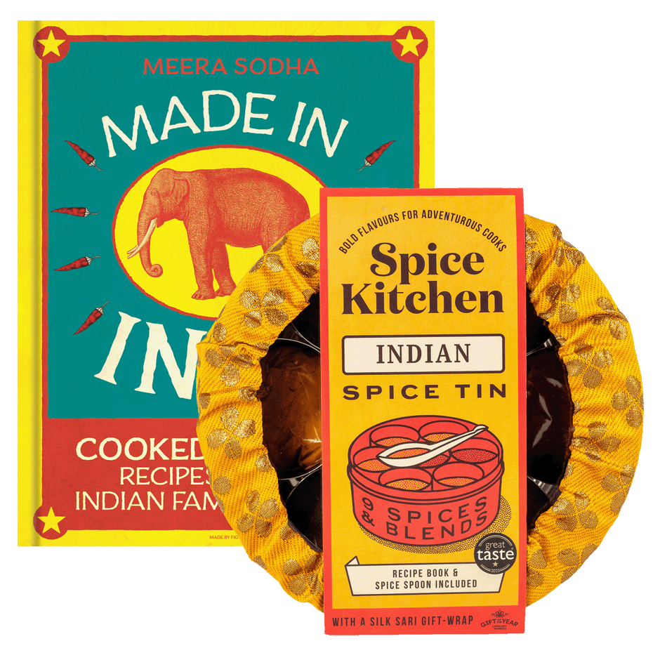 'Made in India' by Meera Sodha & Spice Tin, 9 Spices & Handmade Silk Sari Wrap Spice Kitchen